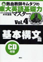 | 商品名 | 熱血教師キムタツの東大英語基礎力マスター Vol.4 基本構文篇 木村達哉/著 |
