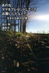 【重要】本商品は委託品となり、取次店から直接手配となります。当店のお買い物ガイド(販売条件・支払い方法・送料について)をよくご確認の上、ご注文下さいますようお願い致します。■ISBN:978-4-907175-07-8 ■タイトル:あのね、ママをプレゼントしてってお願いしたんだ。−生まれる前の記憶 池川明/著 喜和子/著 ■ふりがな:あのねままおぷれぜんとしてつておねがいしたんだうまれるまえのきおく ■著者名:池川明/著 喜和子/著 ■出版社:ぜんにちパブリッシング ■出版年月:201405