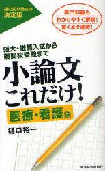 小論文これだけ! 短大・推薦入試から難関校受験まで 医療・看護編 専門知識もわかりやすく解説!書くネタ満載! 樋口裕一/著
