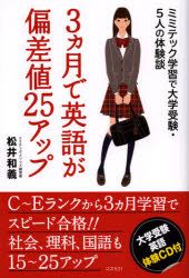 【重要】本商品は委託品となり、取次店から直接手配となります。当店のお買い物ガイド(販売条件・支払い方法・送料について)をよくご確認の上、ご注文下さいますようお願い致します。■ISBN:978-4-87795-244-0 ■タイトル:3カ月で英語が偏差値25アップ ミミテック学習で大学受験・5人の体験談 松井和義/著 ■ふりがな:さんかげつでえいごがへんさちにじゆうごあつぷみみてつくがくしゆうでだいがくじゆけんごにんのたいけんだん ■著者名:松井和義/著 ■出版社:コスモ21 ■出版年月:201210