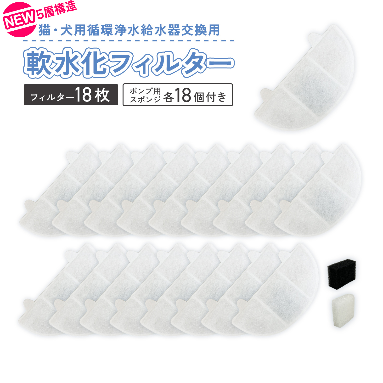 軟水化フィルター 18個入 5層構造 プラスアクア/プラスアクア2/ホームペットと取り付け互換性のあるフィルター ポンプ用スポンジ付属 WF03用 非純正