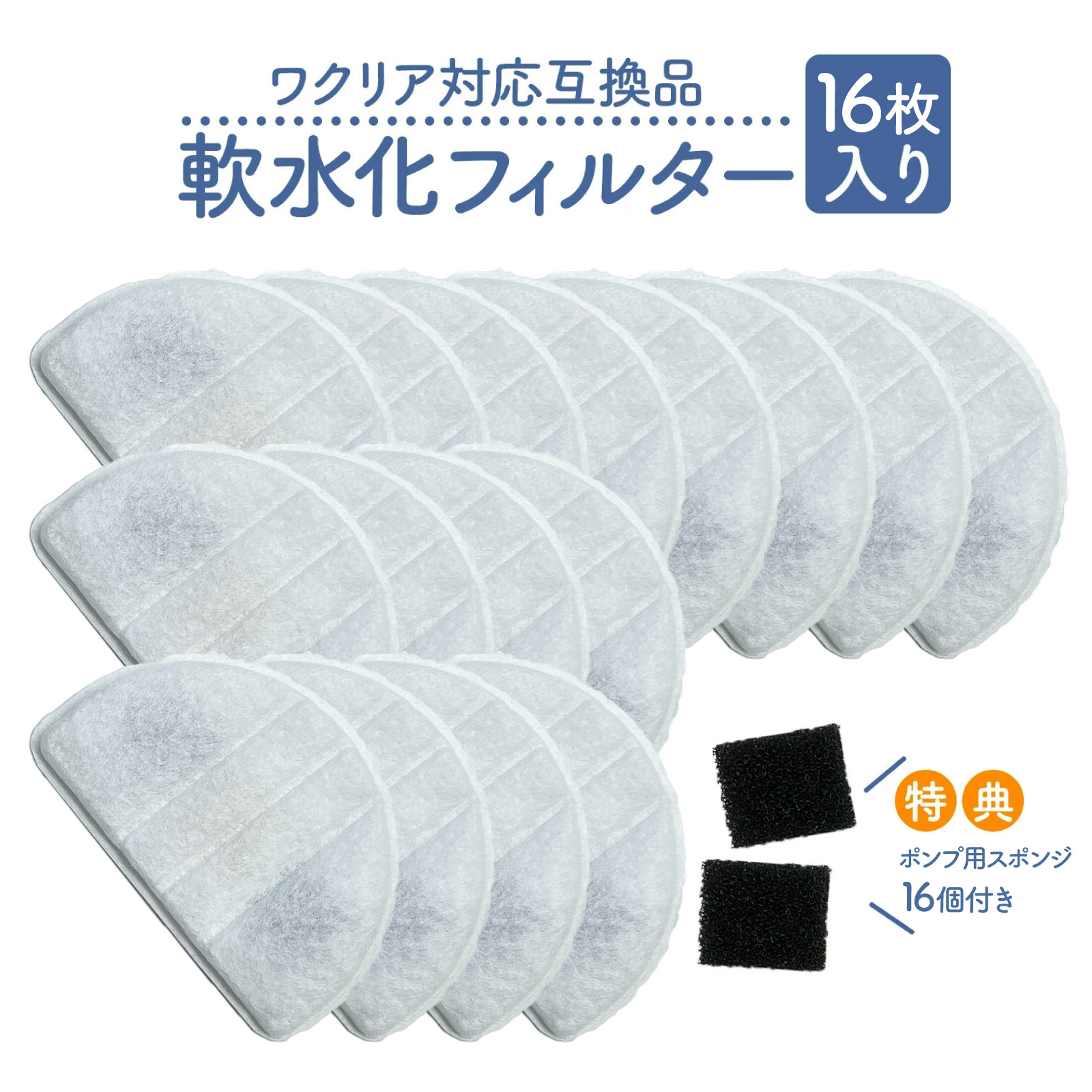 ワクリア(WaClear)用の交換用フィルター 16個入 latuna対応 スポンジ付き 自動給水器 犬猫用 水飲み器 交換フィルター