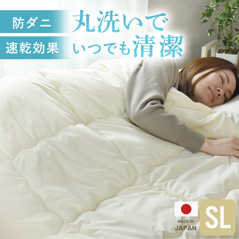 さらに繊維表面は親水加工されており、水になじみやすく、洗浄水が繊維ひとつひとつに行き届きます。水に留まらない特徴もあるため、乾きやすい特徴もあり、大きな布団の家庭洗濯に適していると言えます。