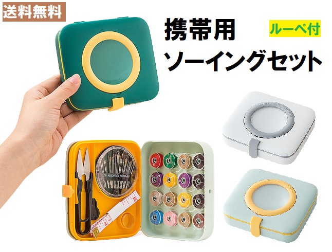ソーイングセット 裁縫 セット キット お得 種類 ルーペ付 携帯用 コンパクト 糸 針 糸切りはさみ 巻尺 糸通し 指ぬき 裁縫箱 ソーイングボックス ソーイングキット 箱 大人 携帯 携帯用 北欧 海外 お洒落 オシャレ 可愛い キュート おすすめ 人気 安い 送料無料 プレゼント ギフト