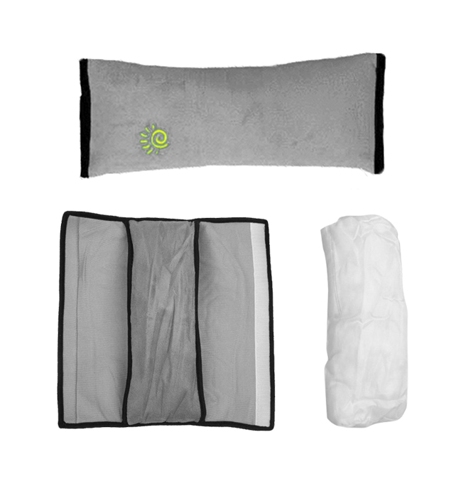 | 本体サイズ | 長さ28cm×幅8cm。コンパクトながら、しっかり首や頭をサポート。子供から大人まで使用可能。 |