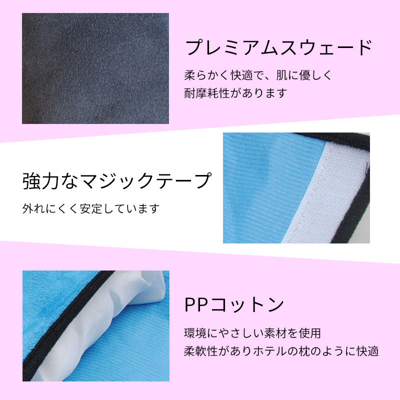 | 柔らかいクッション素材 | 高品質なパッド素材を使用し、柔らかく、頭や首への負担を軽減。お子様の首や頭を優しく守ります。 |