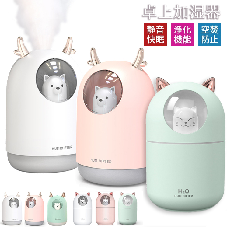 お部屋、オフィスを潤し、空気の乾燥から守ります。空気の浄化、静電気の防止、静音、風邪、病気も抑制できる小型加湿器です。