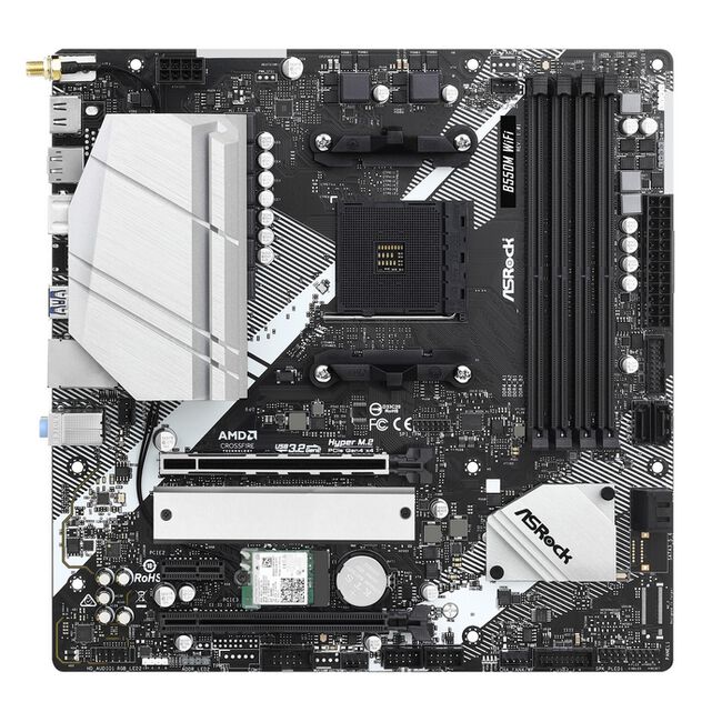 ※画像はイメージです ●対応CPU:AMD Ryzen 5000 / 4000 / 3000 シリーズ●ソケット形状:Socket AM4●チップセット:AMD B550●対応メモリ:DDR4×4●メモリ最大:128GB●対応出力:HDMI×1<br>DisplayPort×1●LAN:RJ-45 LANポート×1 / Wi-Fi 6E / Bluetooth 5.2●フォームファクタ:MicroATX●カラー:ブラック/シルバー