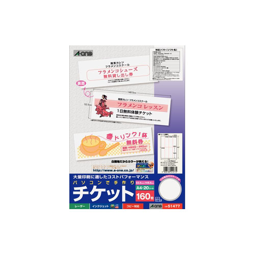 エーワン パソコンで手作りチケット 8面 ホワイト