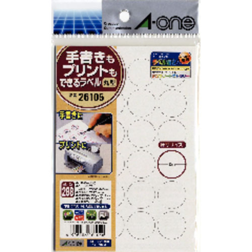 エーワン 手書きもプリントもできるラベル 丸型24面