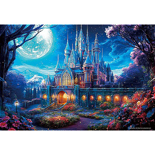 ●月の魔法により光に包まれる城が妖艶な夜を彩る世界