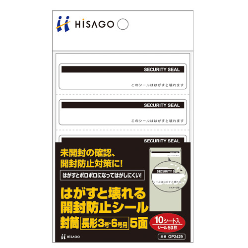 ヒサゴ はがすと壊れる開封防止シール 長形3号・6号用 5面