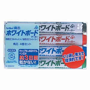 シヤチハタ 潤芯ホワイトボードマーカー 角芯 4色セット 油性 2〜5mm(インキ補充タイプ)