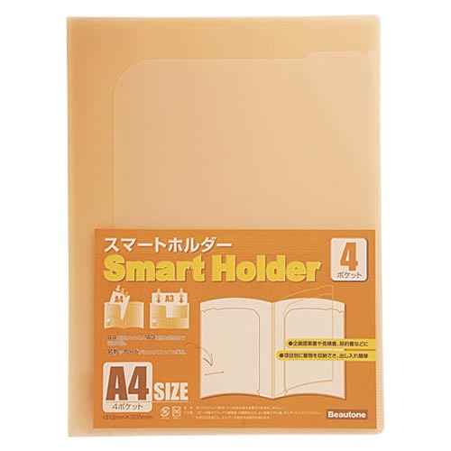 ●ビュートンジャパン スマートホルダー A4判タテ型/A3判ヨコ型兼用(4ポケット)(オレンジ)
