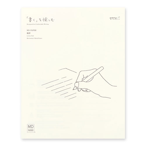 ●にじみや裏抜けがしにくく書き味の良いMD用紙を使った便箋です。クリーム色が目に優しく、黒やブルーブラックのインクが良く映えます。