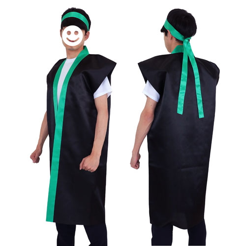アーテック サテンロングハッピL(ハチマキ付) 運動会 体育祭 衣装 お祭り(黒(緑襟))