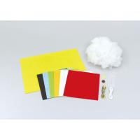 ●セット内容:フェルト 黄(400×300mm)、フェルト6色組(赤、白、黒、黄緑、オレンジ、水)、刺繍針(48mm)、刺繍糸5色組(白、黄、緑、赤、水 各1m)、綿(50g)、ひも(50cm)、ボタン(φ20×3mm)、型紙