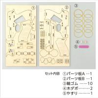 ●セット内容:パーツ板A×1、パーツ板B×1、輪ゴム×10、木ダボ×2、やすり×1