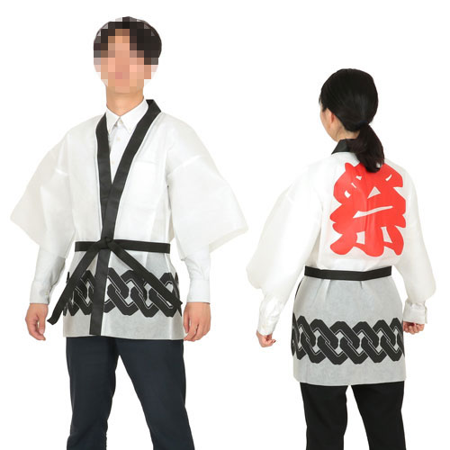 ●背中には迫力満点の「祭」文字プリントが施され、お祭りはもちろん、企業イベントや催し物にぴったりのアイテムです。