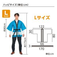 ●商品サイズ:ハッピ:1220×800mm(袖幅300mm、身幅660mm)、帯:1700×30mm