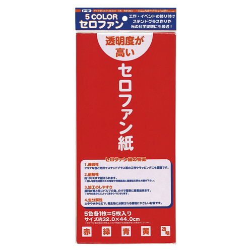 ●トーヨー カラーセロファン セロファン紙(赤,緑,青,黄,透明各1枚)