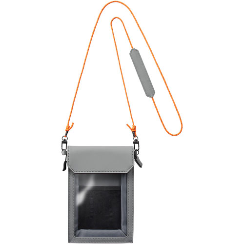 ●芯材入りで型崩れしにくく、開口部は面ファスナー付きのフラップと小物の脱落を防ぐファスナーが付いており、使いやすさと携帯性を兼ね備えています。また、長さ調整が可能なショルダーストラップが付属しており、取り外すことでバッグインバッグとしても使用できます。透明ポケットで中身が一目でわかり、スマートフォンを中に入れたまま画面操作も可能です。