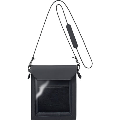 ●芯材入りで型崩れしにくく、開口部は面ファスナー付きのフラップと小物の脱落を防ぐファスナーが付いており、使いやすさと携帯性を兼ね備えています。また、長さ調整が可能なショルダーストラップが付属しており、取り外すことでバッグインバッグとしても使用できます。透明ポケットで中身が一目でわかり、スマートフォンを中に入れたまま画面操作も可能です。