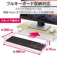 ●パソコン不使用時にはディスプレイスタンドの下のスペースに横幅46cmまでのフルキーボードを収納可能です。