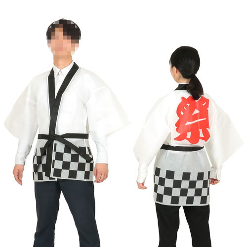 ●背中には迫力満点の「祭」文字プリントが施され、お祭りはもちろん、企業イベントや催し物にぴったりのアイテムです。