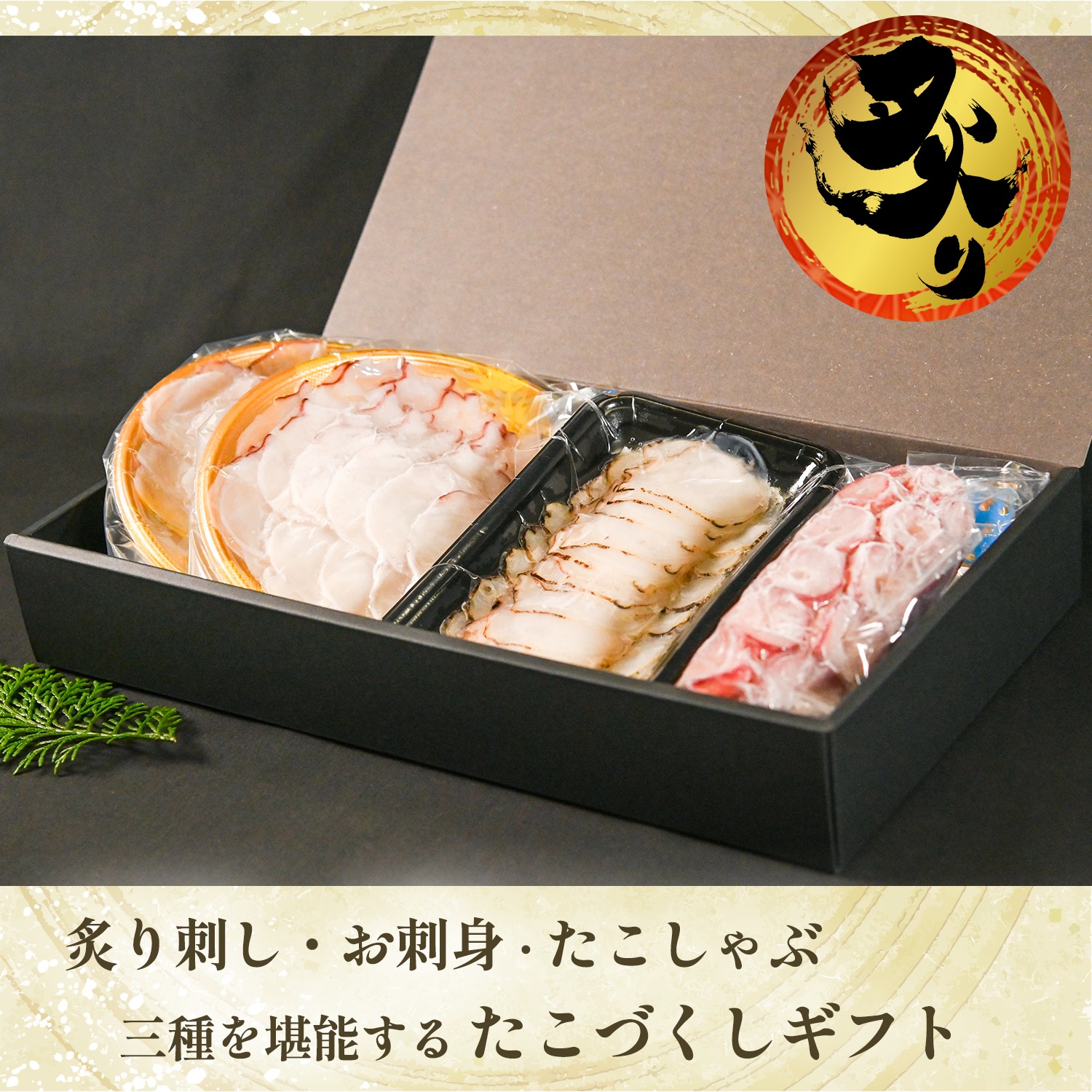 【北海道ギフト】みずたこ 三種食べ比べギフト|北海道産みずだこ薄造り×炙り刺し×足ブロックのたこ三昧|ギフト箱入り 送料無料 歳暮 年末 クリスマス 贈答