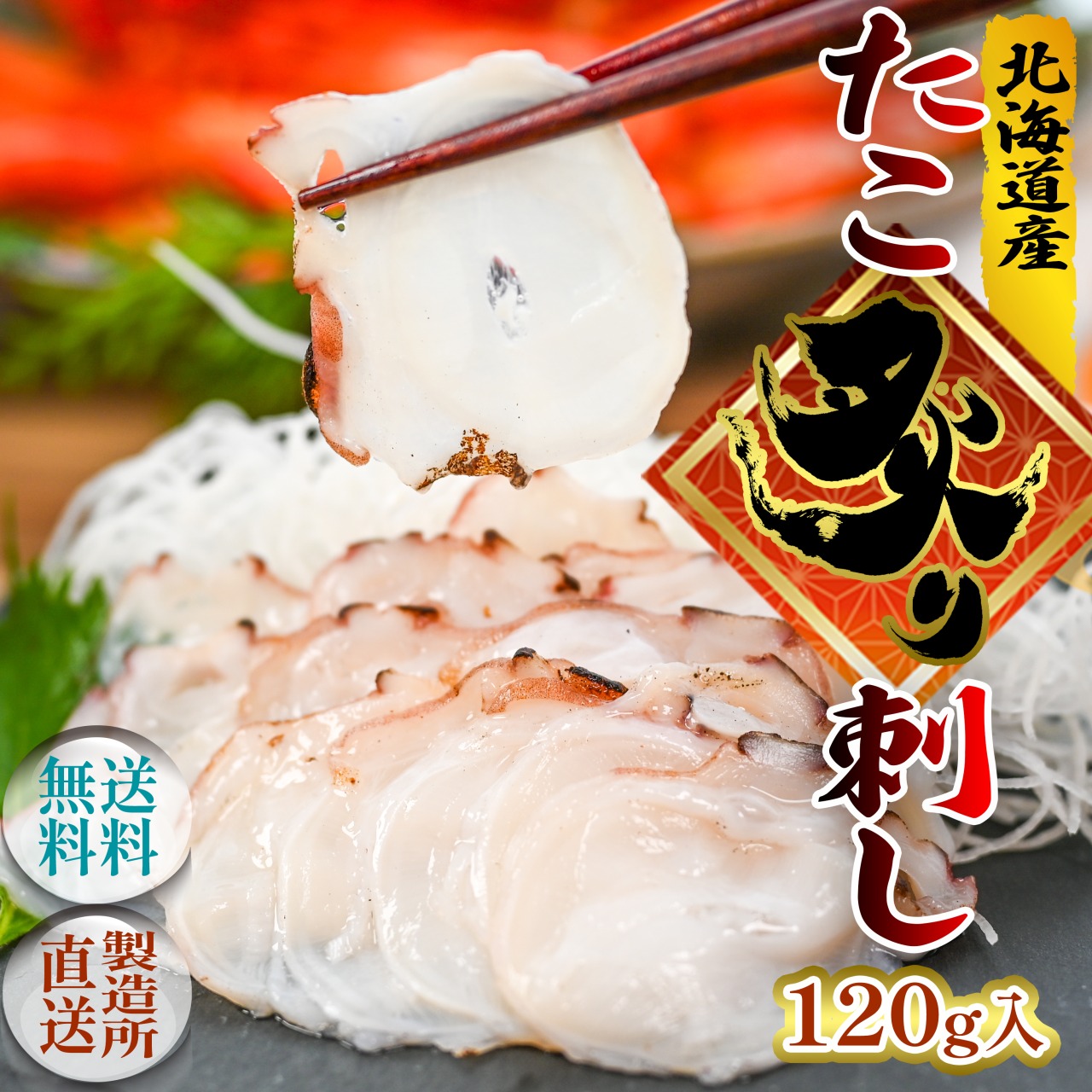 ●北海道太平洋沿岸で水揚げされた新鮮な水たこを丁寧に下処理し、片面のみを香ばしく炙ったあと、スライスしたものを冷凍でお届けします。●重量:120g×4●加工地:北海道根室市●荷姿:真空パックし箱詰め、保冷剤を入れて発送いたします。ご希望により、のしをお付けできます。●保存方法:要冷凍(-18°C以下で保存)●賞味期限:出荷日から6か月●配送方法:クロネコヤマトまたは佐川急便の冷凍便●現在、到着日の指定は対応しておりません。