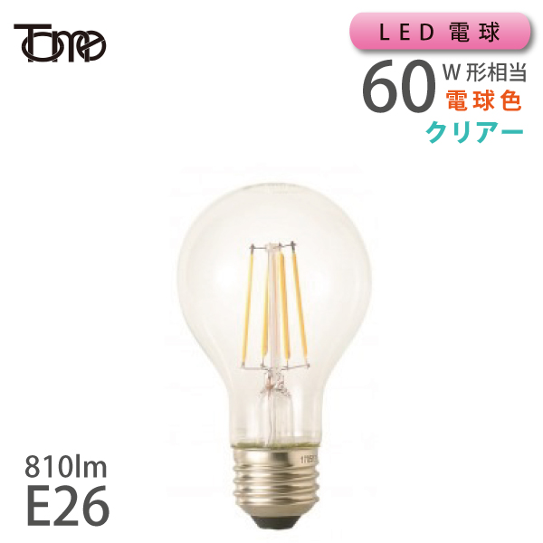 ■商品名:LEDフィラメント電球 60W相当 E26 810lm クリアー 電球色