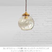 丸いガラスシェードの縁にあしらったゴールドのラインがフェミニンな装いのペンダントライト。