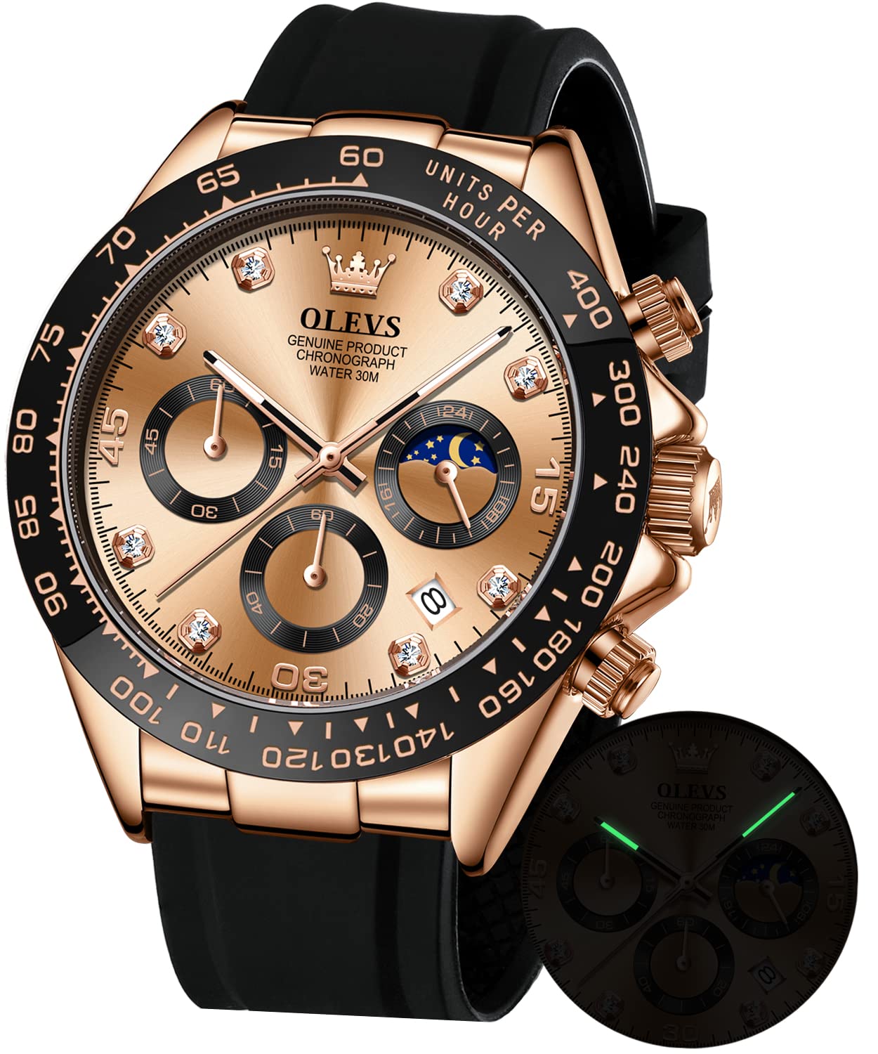 【並行輸入品】 腕時計 OLEVS メンズ腕時計ローズゴールドクロノグラフ多機能スポーツシリコーン高級ダイヤモンド