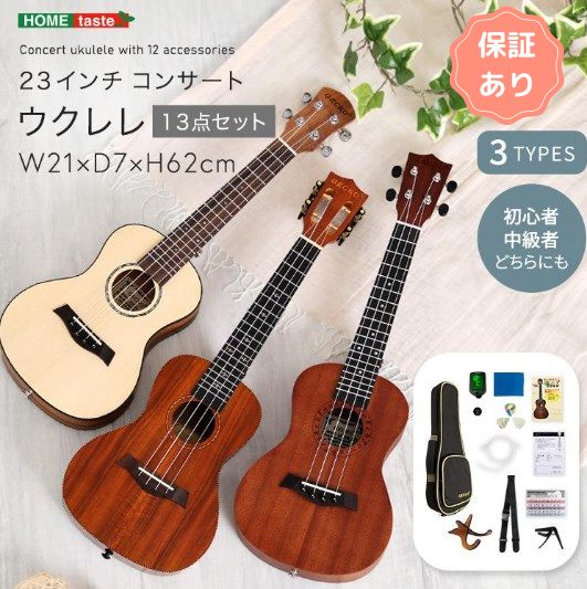 チューナーやピック、コード表などが付いた12点セットなので、届いてすぐ始められます
