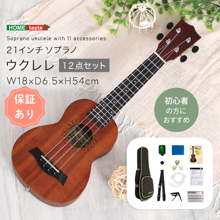 ウクレレ 初心者でも始めやすい12点セット 21インチ(ソプラノ) ウクレレケース 弦楽器 保証あり 楽器