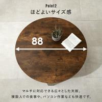 ローテーブルとして使いやすい折りたたみ式の丸テーブル90cmです。一人暮らしやワンルームに最適で、完成品のため届いてすぐ使え、リビングのセンターテーブルや和室のちゃぶ台としてはもちろん来客用テーブルとしても活躍し、食事やちょっとした勉強、メイク用のテーブルとしても使えます。丸型デザインで空間にやわらかさを与えつつ圧迫感を抑え、ゆったり使えるのも魅力です。使わない時は折りたたんでベッドやソファの下に省スペース収納でき、天然木のような木目と白やブラウンなど選びやすいカラーでアンティークやレトロなインテリアにもなじみ、実用性とデザイン性を両立しています。