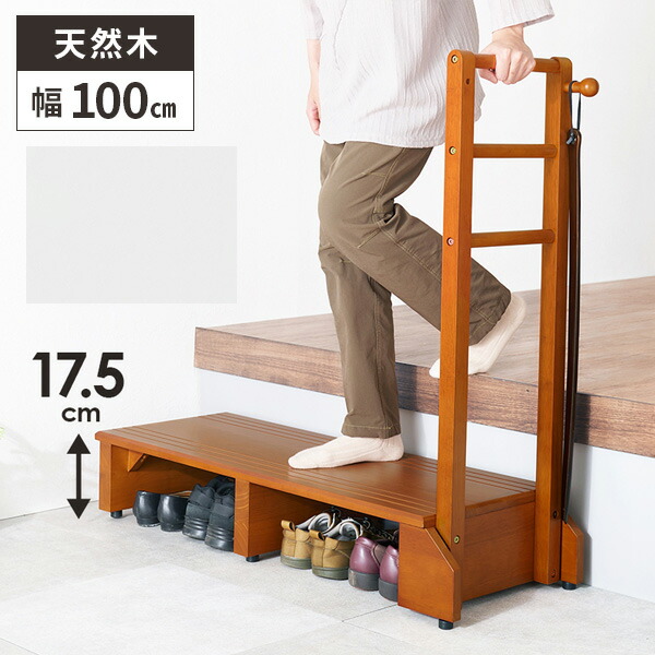 玄関 玄関用 室内 踏み台 踏台 ステップ 段 台 階段 段差 玄関踏み台 玄関ステップ ステップ台 手摺り 手すり 手すり付き 片側 片手 つかまり立ち 高齢者 お年寄り 敬老の日 木製 木 天然木 頑丈 丈夫 1段 一段 スノコ すのこ 靴収納 高さ17cm 介護 介助 自宅 家庭 大人 子ども 子供 こども 100cm サムライ家具