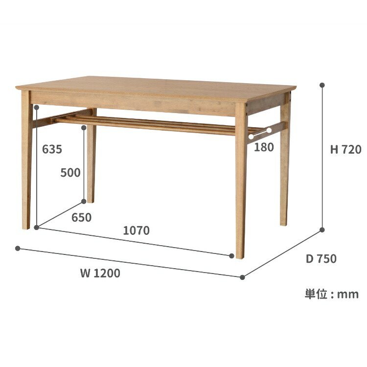 ダイニングテーブル 4人用 単品 おしゃれ 木製 テーブル 北欧 食卓 4人掛け 120×75 棚付き 長方形 木目 天然木 シンプル