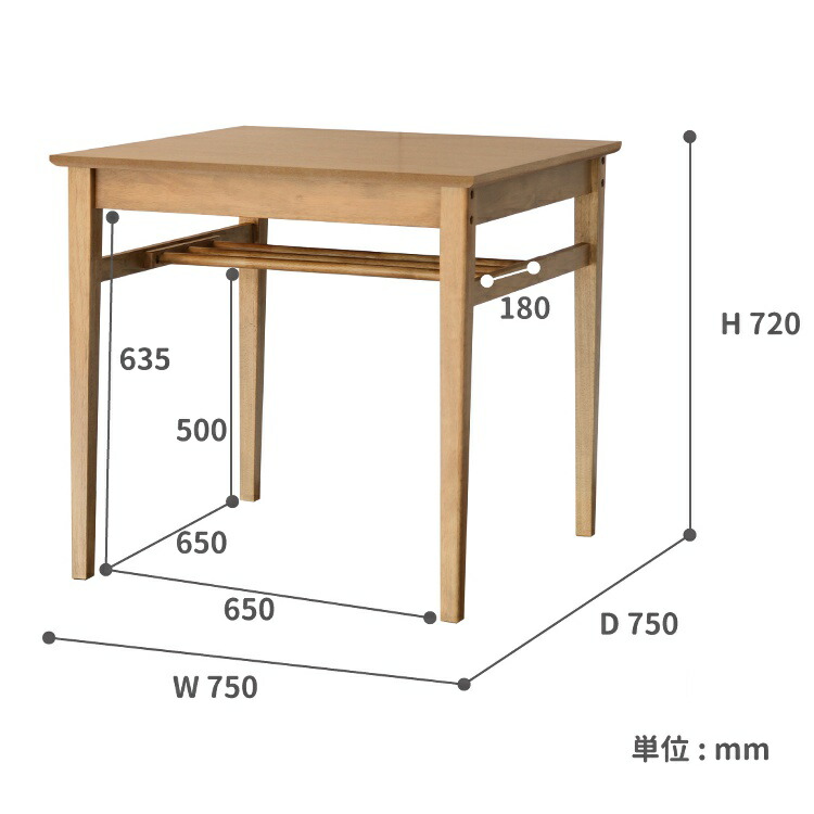 ■ダイニングテーブル 単品 2人用のポイント・幅75cmの正方形の二人掛けのダイニングテーブル