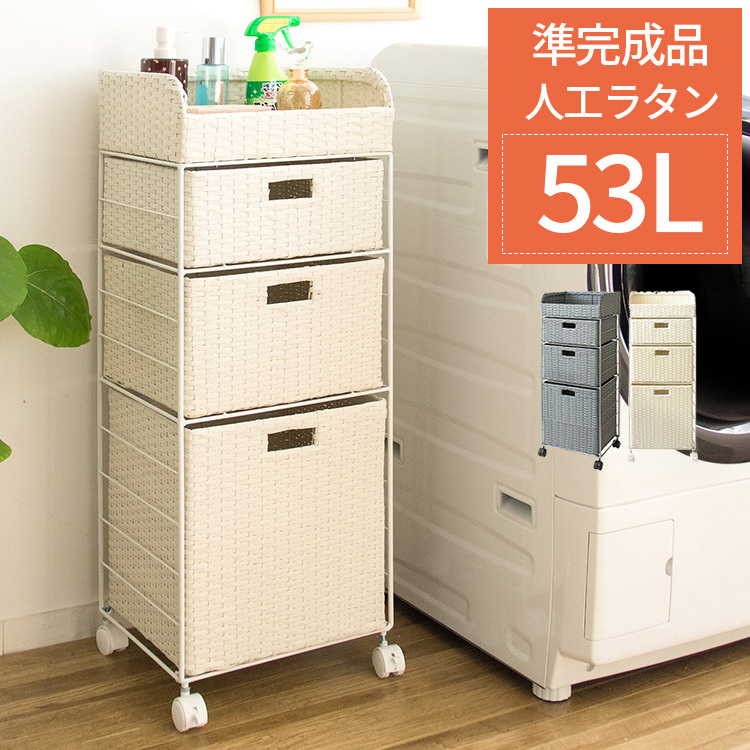 優しいラタンのランドリーラックで気持ちよく収納上手!大小3段の引き出しが使い分けに便利。
