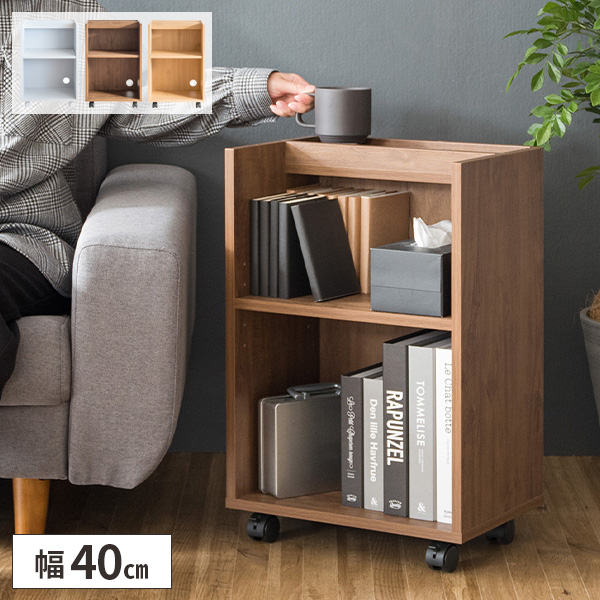 本やファイルが収納できる可動棚が付いたシンプルで美しい木目調のサイドラック。