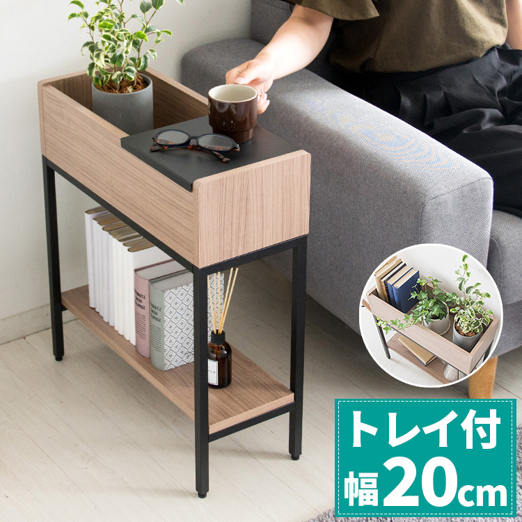 幅50cm、ベッドやソファ横に置ける省スペース設計の木製サイドテーブル。奥行20cmのコンパクトサイズながら棚・ラック収納付きで、雑誌や小物、プランターもすっきり整理できます。一人暮らしやワンルーム、寝室や書斎で活躍し、限られた空間でも使いやすい設計。木目×スチールの北欧風デザインでインテリア性も高く、置くだけでお部屋をおしゃれに整え、快適な生活動線をサポートします。