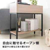 上部の棚下には取り出しやすいオープンタイプの棚板付き。雑誌や小物など色々収納できます。