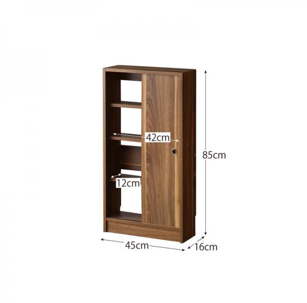 カウンター下収納 奥行16cmの超薄型スリム本棚。幅45cmのコンパクト設計でリビングやキッチン、玄関、一人暮らしのワンルームにも最適な引き戸収納ラックです。木製の木目調デザインで空間になじみやすく、ルーター収納やコミックラックとしても活躍。省スペースで圧迫感なく設置でき、女性一人でも組み立てやすい設計。洗面所など狭い壁面にもフィットし、すっきり整理整頓できます。