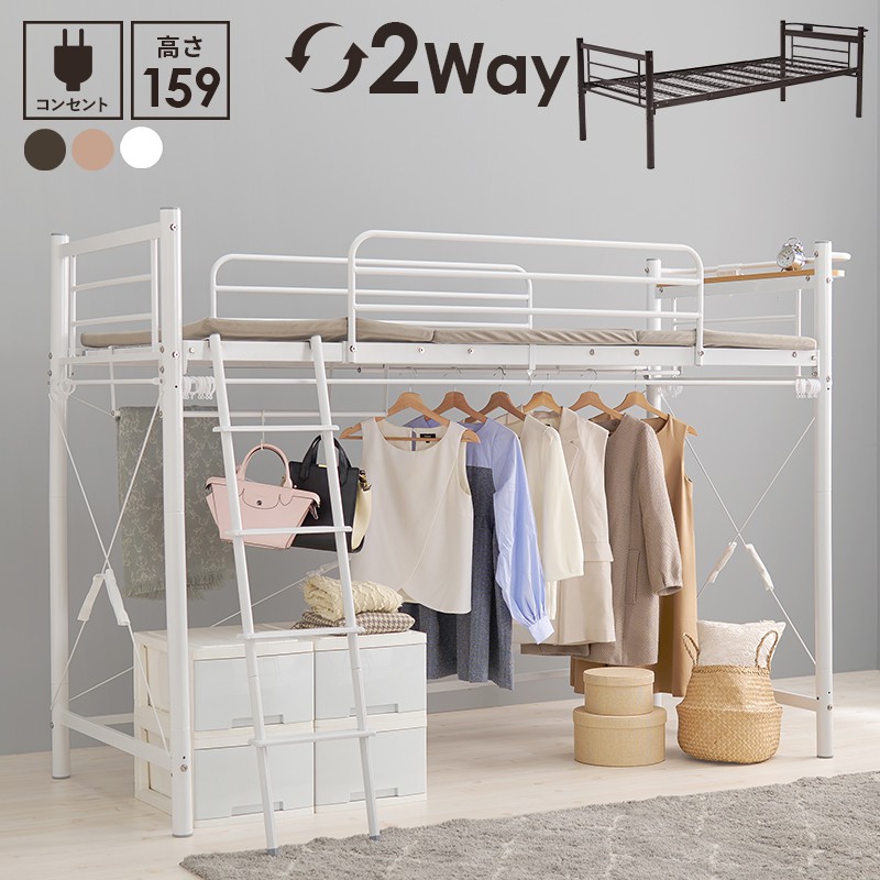 耐荷重100kg ホワイト 棚付き ロフトベッド ブラウン システムベッド ミドルタイプ 白 幅97×220×159/77.5 フレームのみ 茶 ハイタイプベッド ベッド下収納 おしゃれ