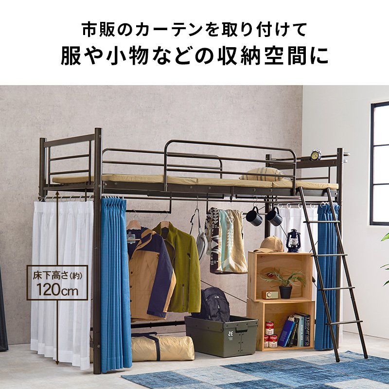 ロフトベッド ベッド下収納 フレームのみ ミドルタイプ 幅97×220×159/77.5 棚付き 耐荷重100kg