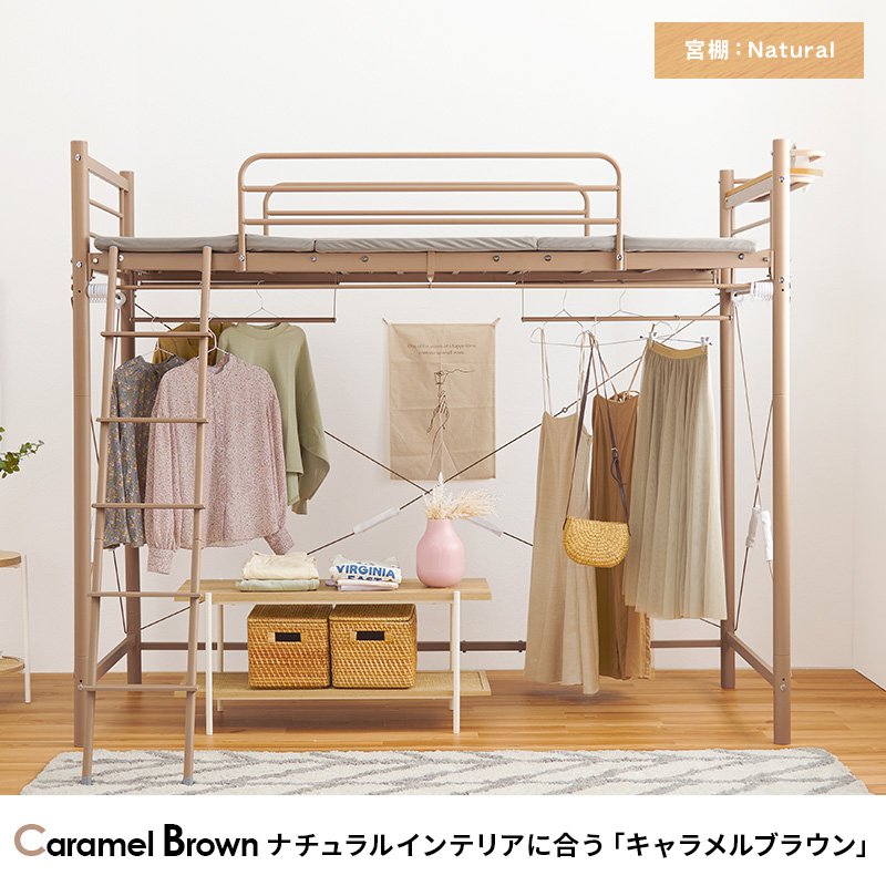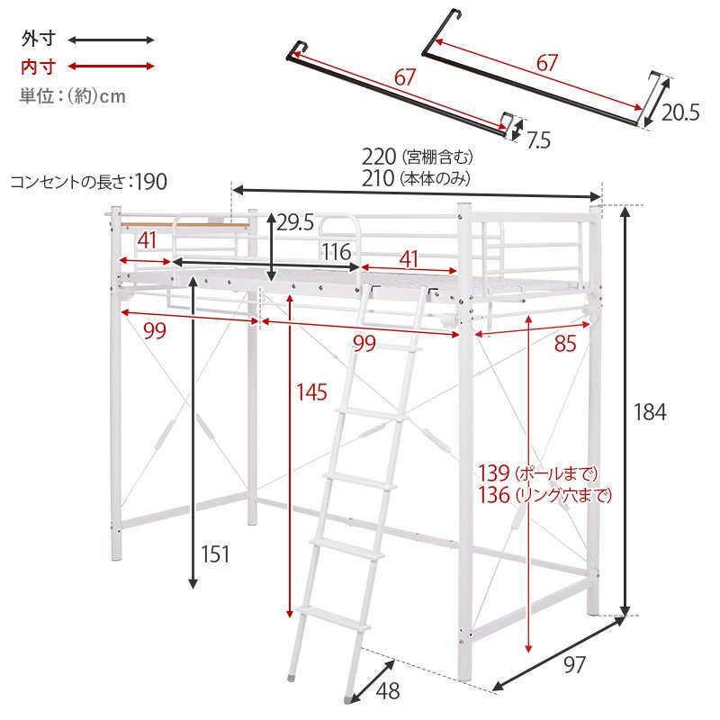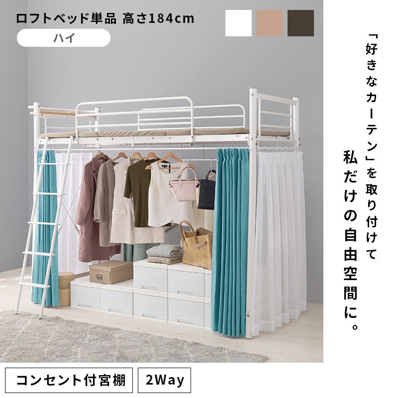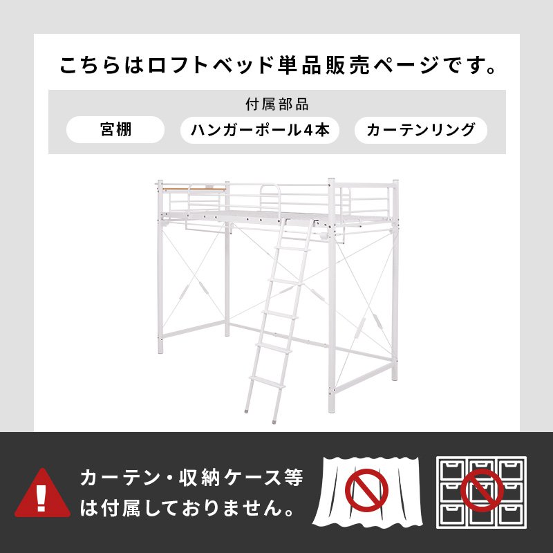 ロフトベッド ベッド下収納 フレームのみ ハイタイプ 幅97×220×184/77.5 棚付き 耐荷重100kg