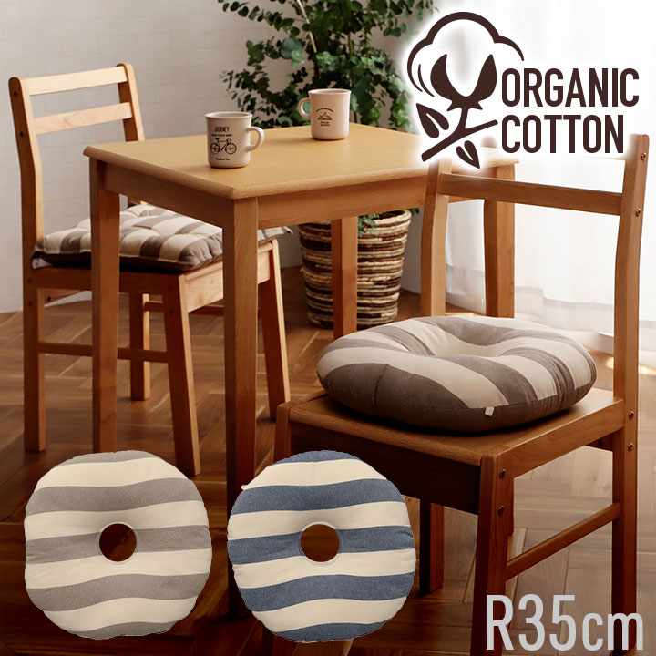 クッション ネイビー 穴あき 約35cm丸 座布団 綿100% チェア ベージュ 椅子 洗える