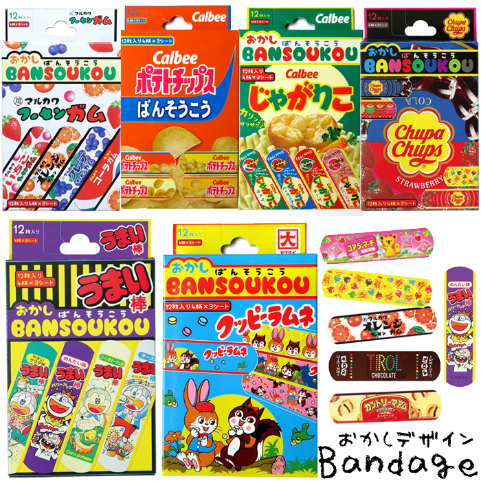 絆創膏 バンドエイド ばんそうこう うまい棒 コアラのマーチ チュッパチャップス お菓子 おかしデザイン かわいい プレゼント ダブルスリー